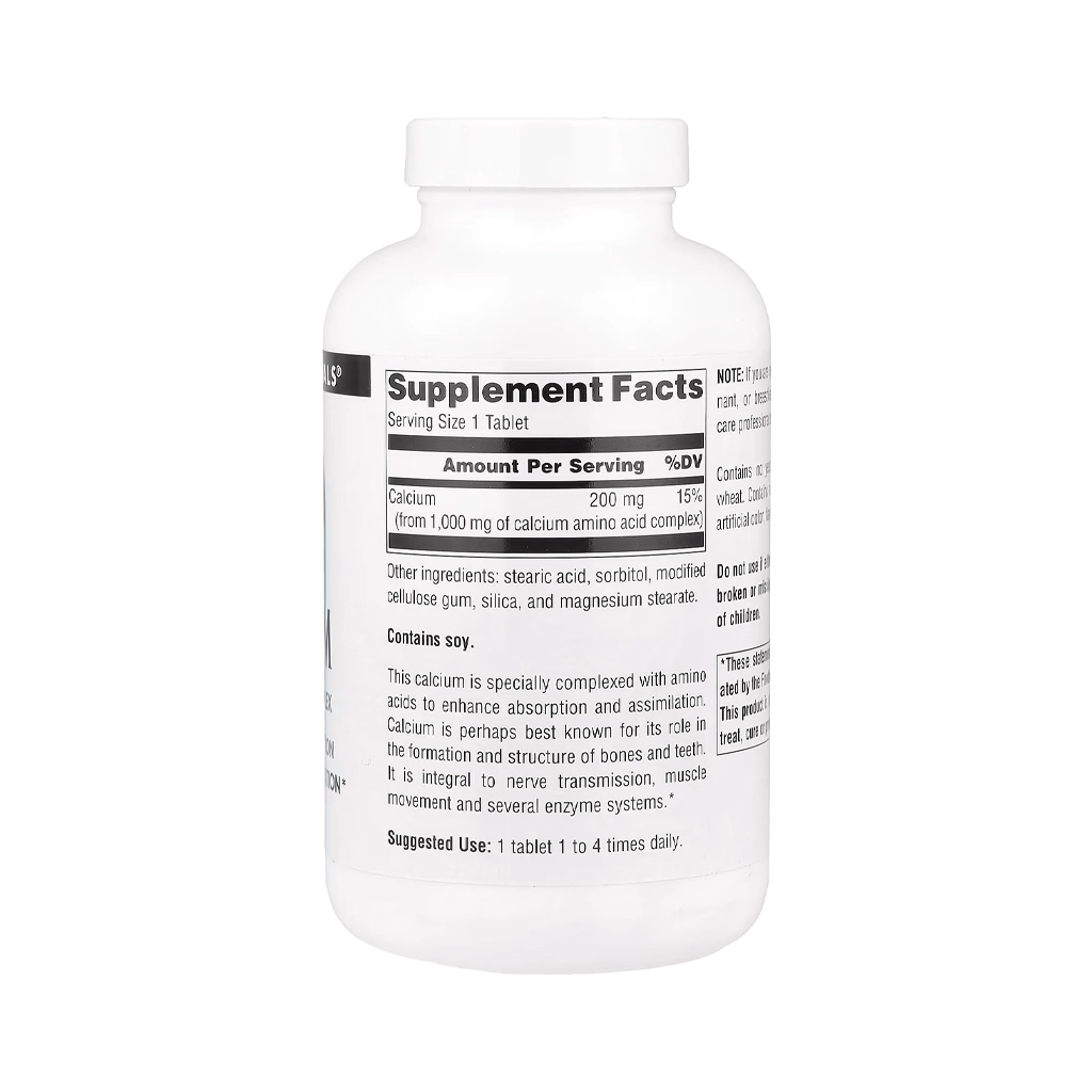 Source Naturals Calcium - это кальций, связанный с аминокислотами (Calcium Amino Acid Complex), способствующий улучшенной абсорбции и усвоению минерала организмом.