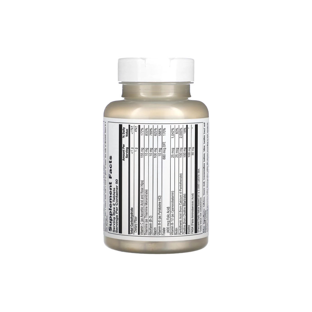 - Кроме полного набора витаминов группы B, формула содержит витамин C и дополнительные нутриенты (холин, инозитол, PABA) для расширенной метаболической и антистресс-поддержки. :contentReference[oaicite:4]{index=4}