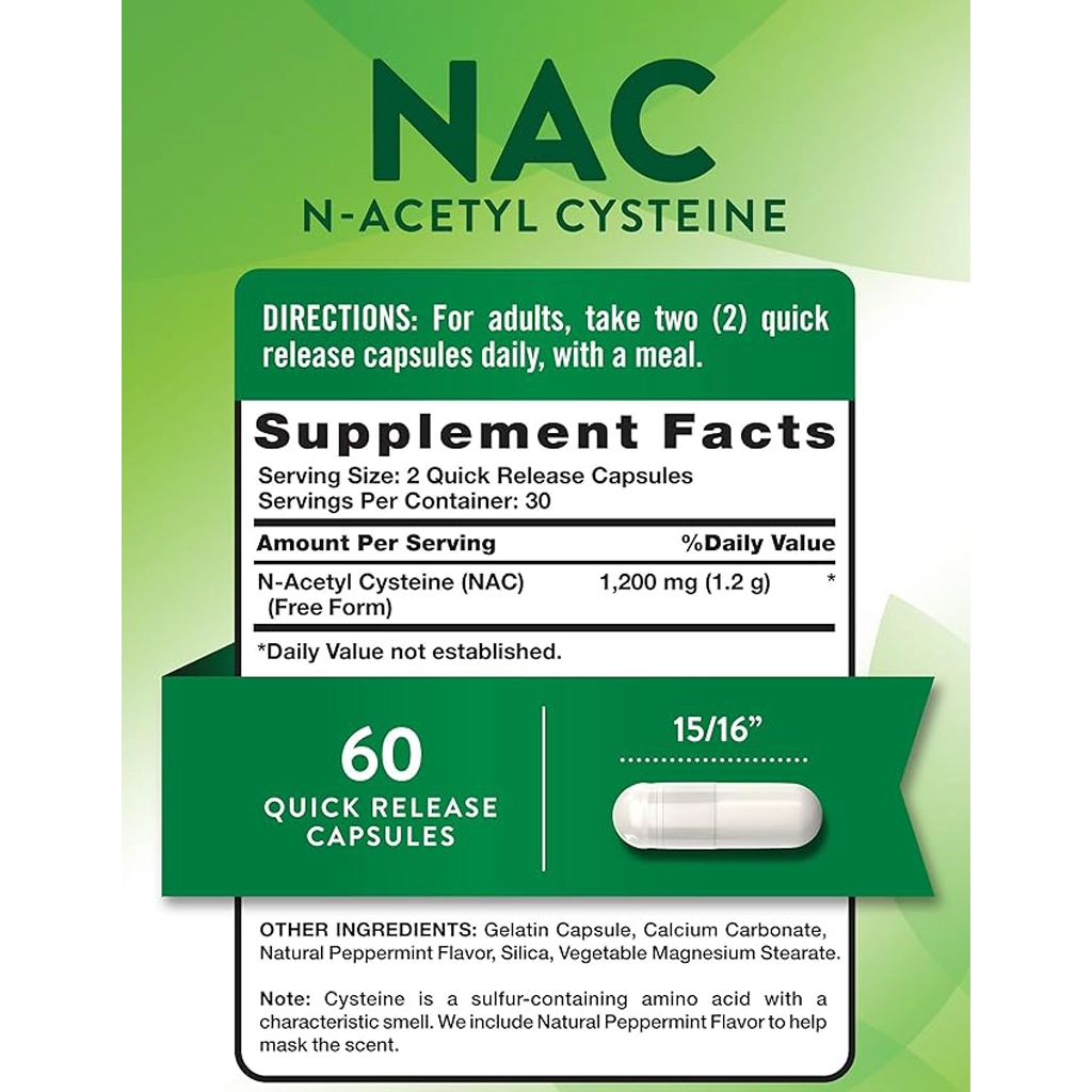 N-Acetyl L-Cysteine (NAC) Nature's Truth - стабильная форма аминокислоты L-цистеина, являющаяся мощным антиоксидантом и предшественником глутатиона. Глутатион – главная защитная молекула организма, нейтрализующая свободные радикалы, поддерживающая работу печени и иммунитета. NAC применяется для поддержания процессов детоксикации, здоровья дыхательной системы, работы иммунной системы и повышения антиоксидантной защиты. Благодаря высокой дозе 1200 мг продукт обеспечивает интенсивную поддержку организма.